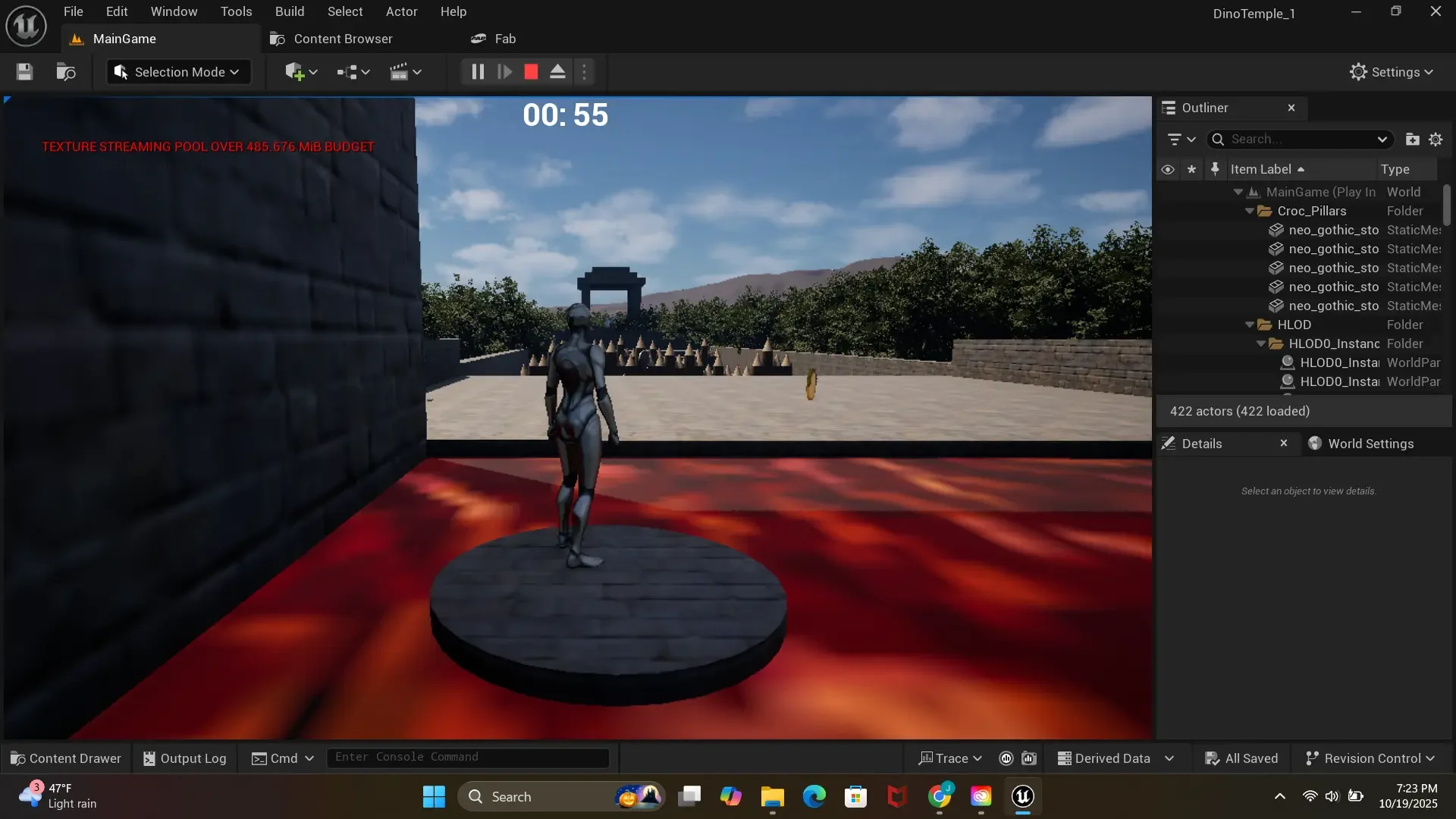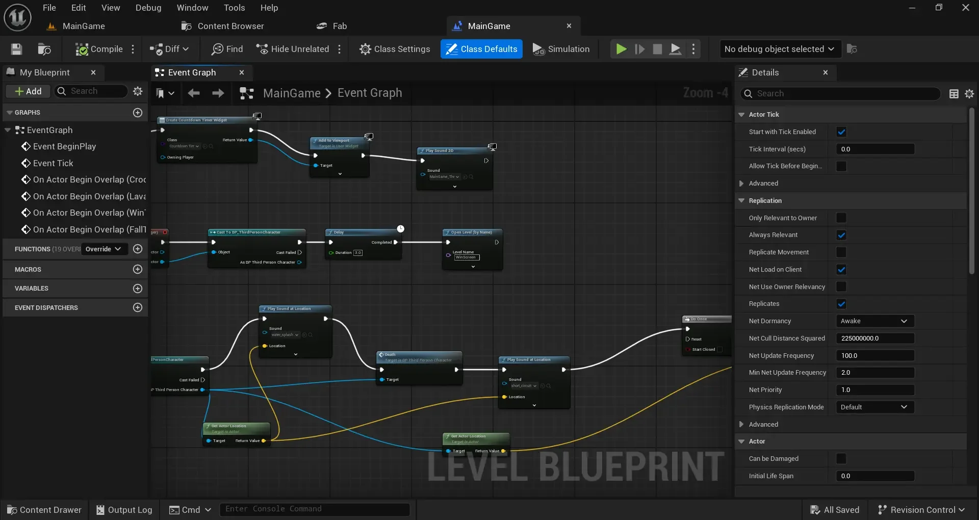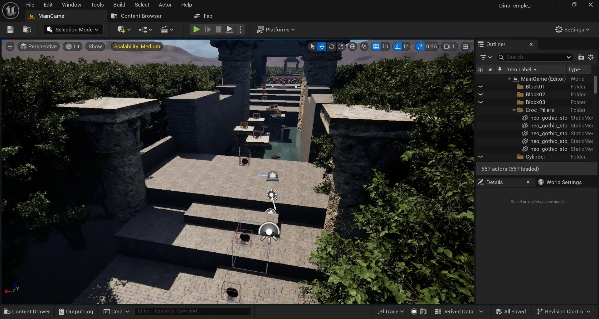 Once the whiteboxing was completed, there came the task of developing the actual environment and adding the props. This would complete the aesthetics of the level, turning the demo from a void of white geometry to a proper jungle temple. However, the truly vital portion of the development process would come in the form of using Unreal’s embedded blueprint system in order to code the essential gameplay mechanics.